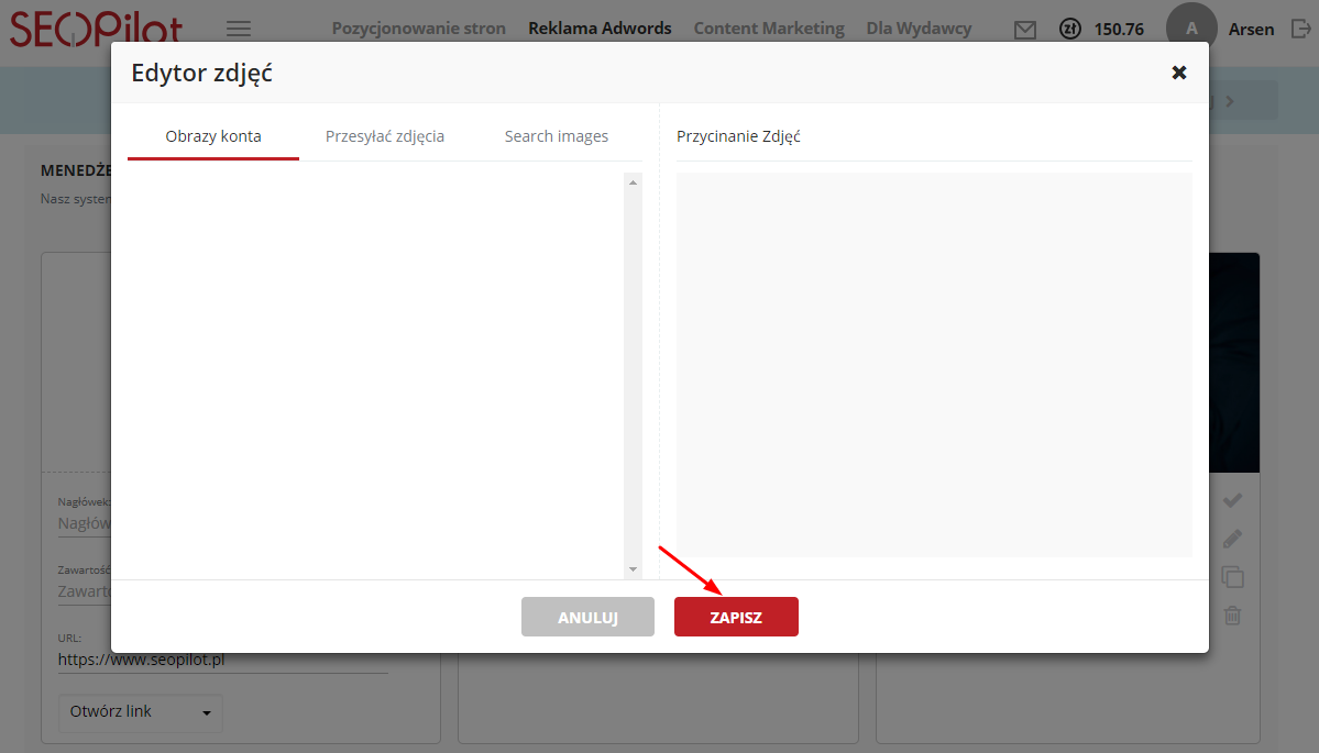 Tu przydatny może okazać się Edytor zdjęć. Po dokonaniu obróbki zdjęcia naciśnij przycisk ZAPISZ.
