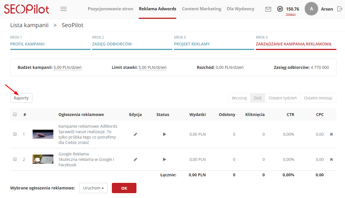26.1. KROK 4 - ZARZĄDZANIE KAMPANIĄ REKLAMOWĄ