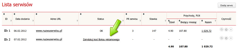 Teraz należy zainstalować w serwisie kod naszego Systemu. W tym celu kliknij na Zainstaluj kodu boksu reklamowego.