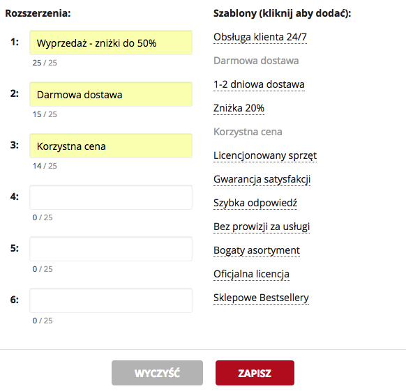 bRozszerzenia niosą dodatkowe informacje, które zachęcają użytkowników do kliknięcia właśnie w Twoje ogłoszenie i skorzystania z Twojej oferty! Dzięki temu zwiększają one współczynnik klikalności reklamy o kilka punktów procentowych, w ten sposób zyskujesz nowych klientów.