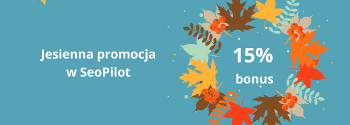Pragnąc nieco rozgrzać naszych użytkowników i umilić jesienną aurę przygotowaliśmy dla was tradycyjną promocję na doładowanie w SeoPilot. Wystarczy doładować konto, wpisać kod promocyjny i wykorzystać bonus na dowolną usługę SeoPilot.