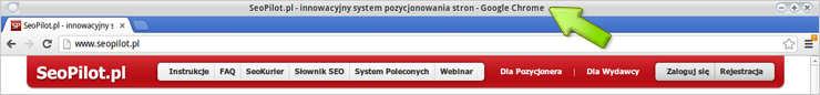 Znaczniki TitleDzięki znacznikowi HTML Title można określić tytuł strony, pojawiający się na pasku tytułu przeglądarki: