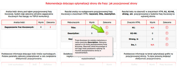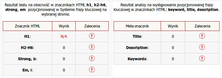 - Znaczniki powinny być otwierane i zamykane poprawnie. W systemie Rekomendacji SeoPilot.pl sprawdza, czy znaczniki te są przypisane dla pozycjonowanej strony i czy została w nich zawarta fraza kluczowa.