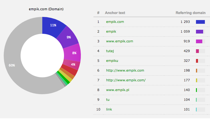 Jak tworzyć listy anchor tekstów?Tworząc listy anchor tekstów dla strony postępuj zgodnie z zasadą dywersyfikacji: stosuj anchor, który zawiera w tekście frazy kluczowe, a następnie wzbogacaj go o dodatkowe słowa tzw. długiego ogona, używaj brandowych anchorów, wstawiaj zamiast tekstu adres URL strony docelowej, domeny itd. Trudno jest tu określić konkretne proporcje - każdy specjalista tworzy swój własny schemat. ![]() Przykład linku z brandowym anchor tekstem. Na pewno uniknąć należy dużej liczby identycznych anchor tekstów - im bardziej zróżnicowane są, tym lepiej. Polecamy zwrócić uwagę na strony, znajdujące się na wysokich pozycjach Twojej niszy i przeanalizować użwyane przez nich anchor teksty. Taką możliwość dają Ci różne serwisy analityczne, jak np Majestic, Ahrefs, Semrush i tak dalej. Przeanalizujmy, dla przykładu, polską wersję serwisu Wikipedia. Serwis powinien cechować się dużą liczbą naturalnych linków, znajduje się na wysokich pozycjach, sprawdźmy zatem jego listę anchor tekstów posługując się serwisem Majestic. ![]() Jak widać lista to w ponad 50% anchor teksty, które nie zawierają fraz kluczowych. Przeanalizujmy teraz stronę komercyjną, która znajduje się na wysokich pozycjach pod wieloma zapytaniami. Serwis posiada bardzo szeroki asortyment, a zatem charakter jego anchor tekstów jest specyficzny, niemniej jednak główne anchor teksty to: adres URL, brand etc. ![]() Jest to doskonały przykład tego, jak wyglądają naturalne teksty anchor. Ciężko jest tu mówić o proporcjach, jednak zalecamy aby procentowy udział tzw. "anchorów sprzedażowych" był nie większy niż naturalnych anchor tekstów. |