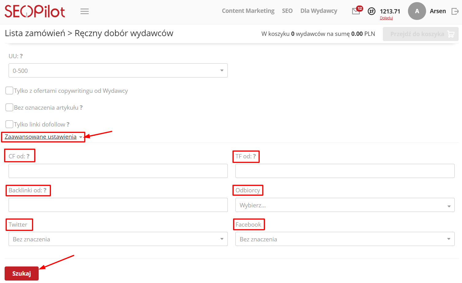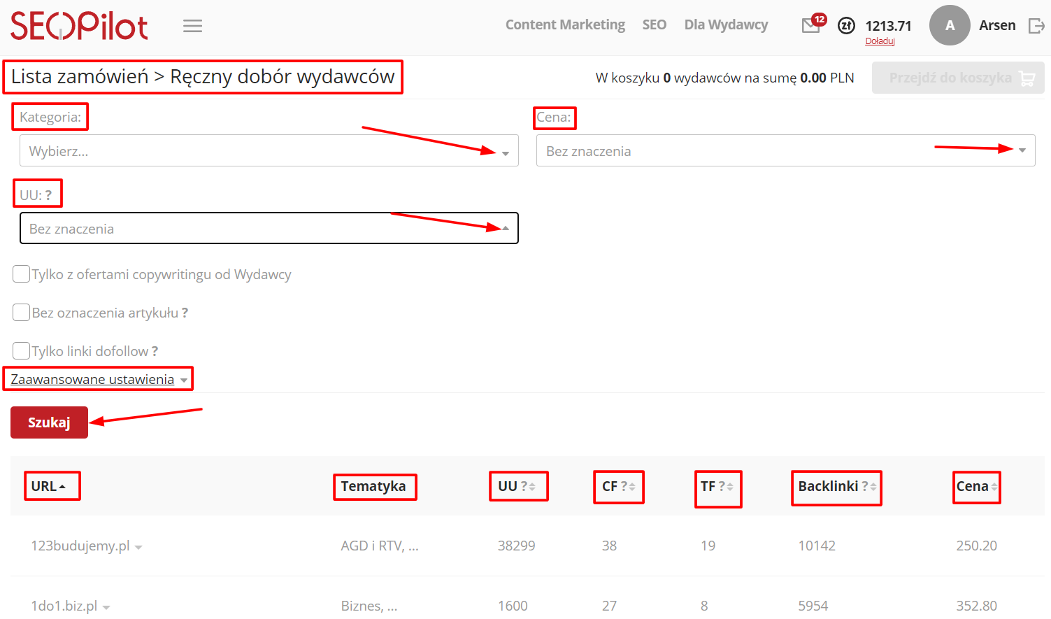 Podążając za tym mottem SeoPilot stworzyło platformę, łączącą różne usługi i narzędzia w jednym miejscu, ale nie tylko. Przykładem może tu być właśnie usługa Content Marketingu, która pomaga zadbać o treści reklamodawcy i zwiększyć wiarygodność jego domeny. Ogromna baza premialnych i jakościowych wydawców, jaką oferuje tu SeoPilot pozwala na szereg możliwości, jedną z nich jest właściwe dobranie wydawców do domeny. Pomaga w tym oczywiście łatwa wyszukiwarka, oraz jej liczne filtry dostępne w opcji zaawansowanej. Jak z nich skorzystać?