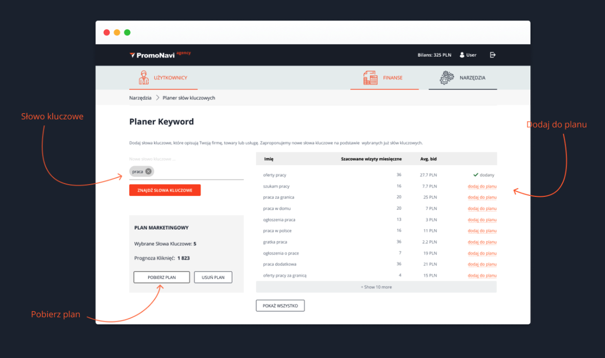 Narzędzia do optymalizacjiTu kluczem jest liczba mnoga w słowie “narzędzia”, bowiem znaleźć tu można wiele propozycji, z których każda ma inne zastosowanie. Taki układ jest bardzo korzystny, ponieważ eliminuje konieczność szukania różnych pomocy na różnych portalach, co w konsekwencji bardzo upraszcza cały proces. Na PromoNavi znaleźć można między innymi “planer fraz kluczowych” oraz narzędzie do łączenia wybranych słów w rozmaite kombinacje fraz, co ostatecznie znacznie skraca poszukiwania pełnego zestawu haseł do kampanii.